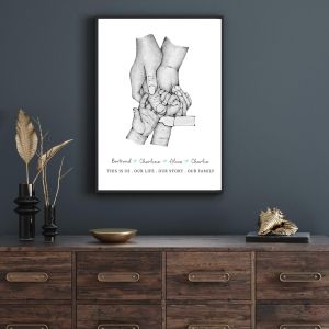 Plagát vytvorený ako oslava rodičovstva a jeho silných väzieb. Urobte plagát jedinečným a osobným vyplnením mena. Ilustrácia je kreslená ručne a digitálne upravená, aby poskytla elegantný a moderný pocit. Tieto plagáty sú ideálne na oslavu rodiny a špeciálnych okamihov v živote.