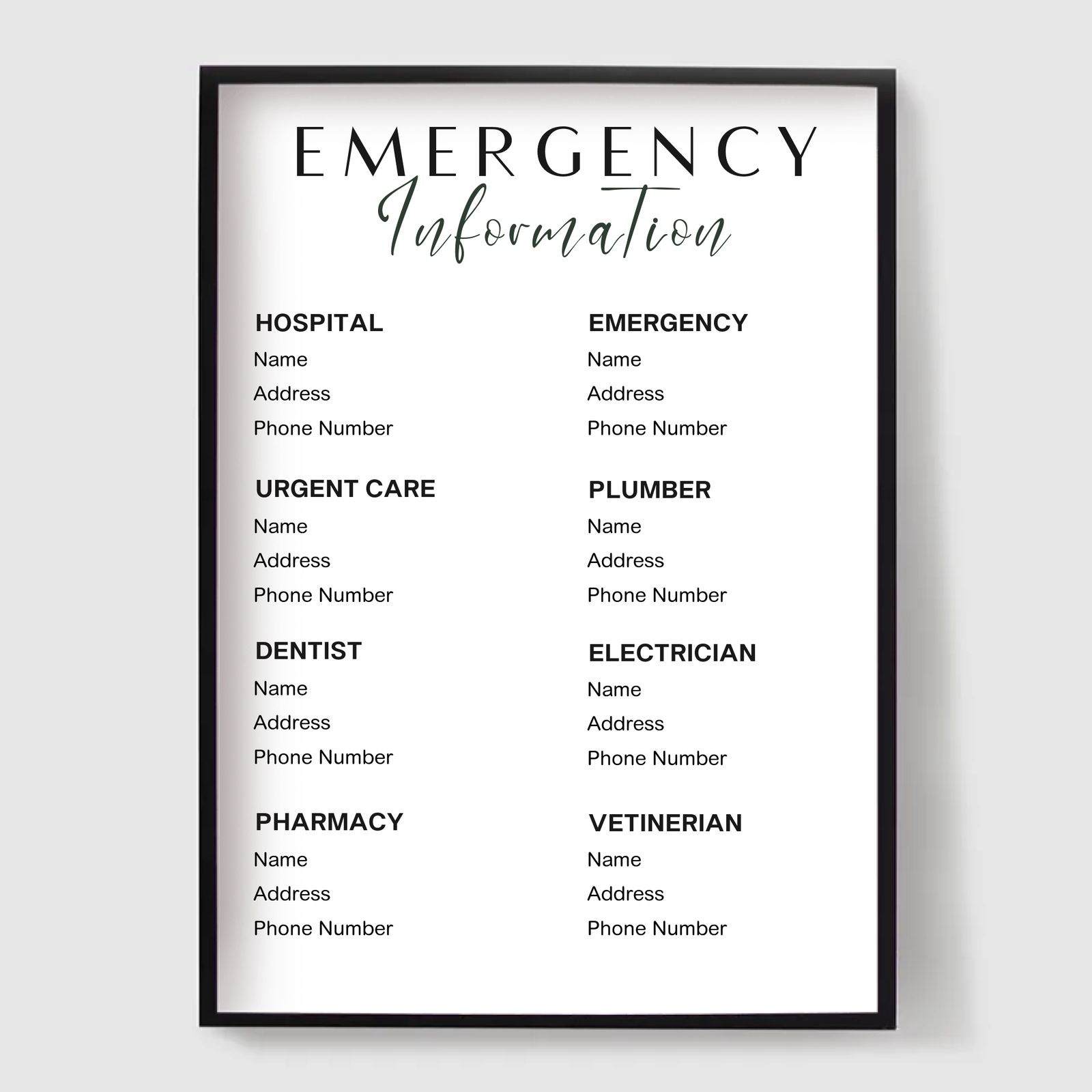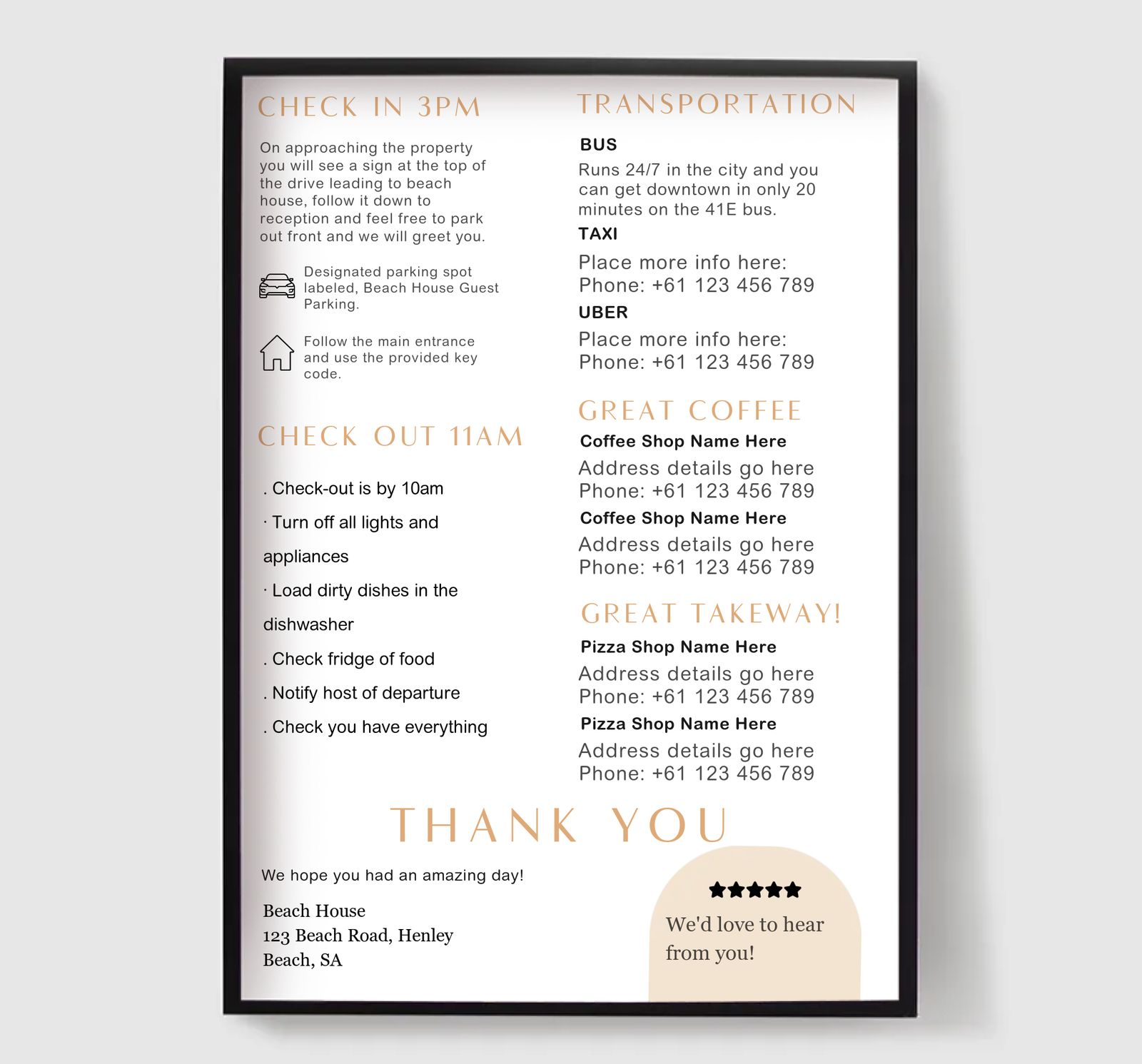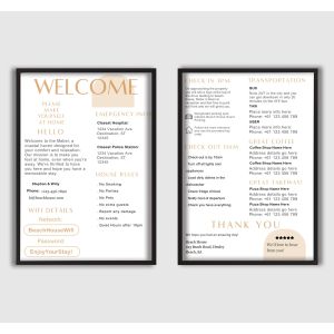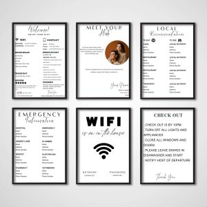 Od značiek WiFi a pravidiel domu až po pokyny na príchod, núdzové informácie a miestne odporúčania, naše plagáty vám pomáhajú komunikovať všetko, čo potrebujú vaši hostia - jasne a krásne. Ideálne pre vytvorenie profesionálnej, bezproblémovej skúsenosti pre hostí a zlepšenie vášho interiéru.