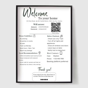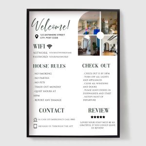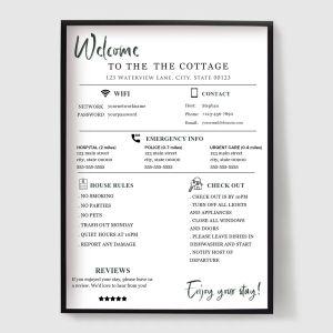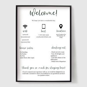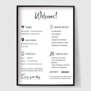 Robte svojich hostí cítiť sa vítanými a informovanými pomocou našej kolekcie plagátov pre Bed & Breakfast (B&B). Navrhnuté pre hostiteľov Airbnb, penzióny a dovolenkové prenájmy, tieto tlače spájajú štýl s funkciou.